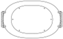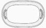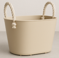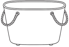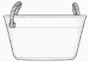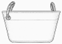 ① 略楕円形状で小判型の底面とこれより大きい略楕円形状で小判型の上面とからなる中空の逆略楕円錐台形状の上面が開口された形状をなす収納容器本体と、その収納容器本体の長手方向の両端上部に対向して設けられた縄紐からなる一対の把手とから構成されている。