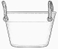 ② 収納容器本体は、軟質の合成樹脂で一体に形成されており、正面視及び背面視において、収納容器本体の上辺の長さと下辺の長さと高さの比率は約10:8.1:7.7で、側面視において、収納容器本体の上端部の幅と下端部の幅の比率は約6.8:5.1であり、正面視及び背面視における収納容器本体の中央の高さと両端の高さの比は1:1である。