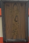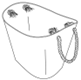 ③ 一対の把手は、二本の短い縄紐からなっており、収納容器本体の長手方向の両端上部の側面に対向して穿設された左右一対の小さな透孔に太さのある縄紐の両端部を前記収納容器本体の外側から内側へそれぞれ挿通し縄紐の各端部に大きな止め結びを形成し、その止め結びの先の縄紐がほつれて末広がり状となっていて、その止め結びの存在が収納容器本体の上端の開口から見えるようになっており、収納容器本体の外側に存在する縄紐はU字状に垂れ下がっている。