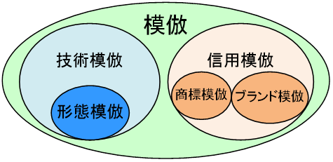模倣には、図4に示すように技術模倣と信用模倣の二種類あると思います。