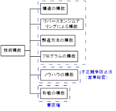 技術模倣には、構造の模倣、製造方法の模倣、プログラムの模倣、リバースエンジニアリンクによる模倣、ノウハウ模倣、及び形態模倣も含みます。